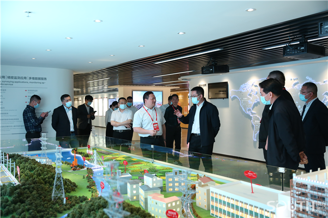 在繆小林等的陪同下,溫建飛書記一行參觀了南方測(cè)繪體驗(yàn)中心。在這里,來(lái)賓一行聽(tīng)取了南方測(cè)繪公司實(shí)力、發(fā)展歷程、技術(shù)裝備和企業(yè)文化等詳細(xì)介紹,雙方對(duì)南方測(cè)繪在常規(guī)和新興測(cè)繪裝備、衛(wèi)星導(dǎo)航定位應(yīng)用、地理信息應(yīng)用服務(wù)及智慧城市應(yīng)用等方面的技術(shù)探索和產(chǎn)業(yè)成果進(jìn)行了簡(jiǎn)短交流。