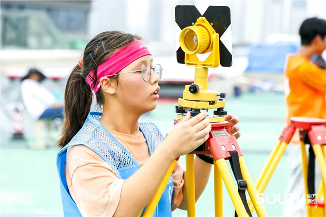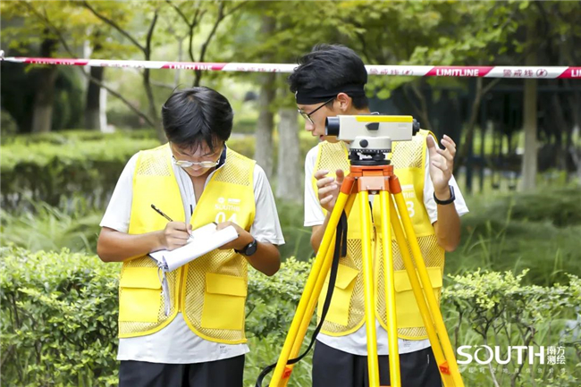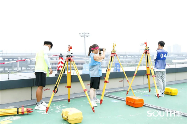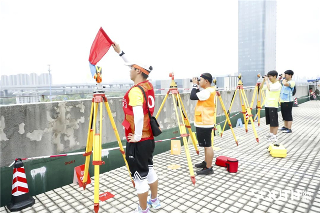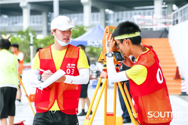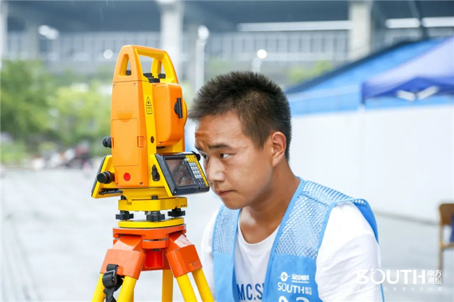 根據(jù)賽程安排,8月26-27日兩天的比賽均在上午7:00開(kāi)始。本次大賽共有兩個(gè)賽項(xiàng),分別是四等水準(zhǔn)測(cè)量和一級(jí)導(dǎo)線測(cè)量及單點(diǎn)放樣。兩個(gè)賽項(xiàng)分別在學(xué)校內(nèi)劃定的兩個(gè)區(qū)域內(nèi)同時(shí)進(jìn)行。賽場(chǎng)上,選手們都在與時(shí)間賽跑,爭(zhēng)分奪秒地完成手上的儀器架設(shè)和調(diào)平。在兩天的比賽中,大賽曾經(jīng)歷了雷雨天氣,參賽選手們穿上雨衣,眼鏡已經(jīng)被雨水打濕,手中記錄測(cè)量數(shù)據(jù)的筆卻從未停下。各參賽團(tuán)隊(duì)分工明確,井然有序地完成了一個(gè)又一個(gè)點(diǎn)位的測(cè)量。大賽組委會(huì)安排了100余領(lǐng)隊(duì)和指導(dǎo)老師、50余名裁判和專(zhuān)家、200余名學(xué)校工作人員和志愿者全程陪伴,南方測(cè)繪的40余名技術(shù)工程師也一直積極做好賽事的保障工作,及時(shí)為競(jìng)賽內(nèi)容調(diào)整儀器的參數(shù),雙方共同保證大賽的順利進(jìn)行。