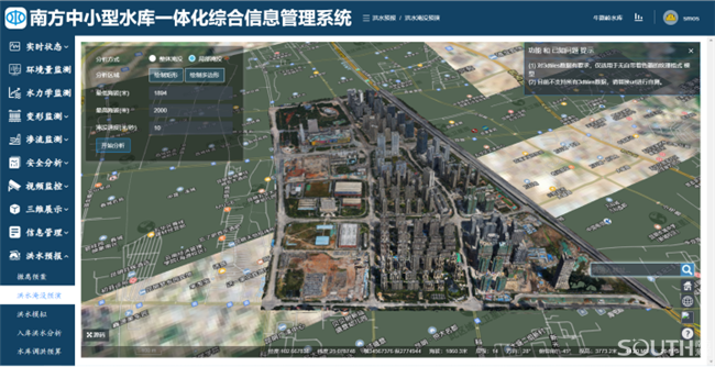 南方中小型水庫一體化綜合信息管理系統(tǒng)軟件具備綜合聯(lián)動(dòng)分析功能,可基于高差、淹沒速度及淹沒方式進(jìn)行洪水淹沒預(yù)演,并根據(jù)實(shí)際情況制定撤離預(yù)案,另外還可基于歷史數(shù)據(jù)進(jìn)行預(yù)測(cè)。
