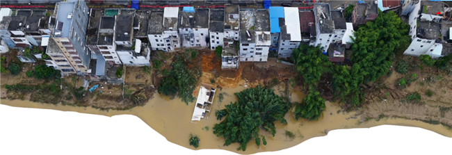 受臺風“蘇拉”帶來的強降雨影響,廣東省云浮市羅定江大灣鎮(zhèn)河段遭遇1985年以來最大洪水。9月5日,大灣鎮(zhèn)河段兩岸出現多處崩岸險情,一處房屋倒塌,多處房屋地基嚴重受損面臨傾倒風險。