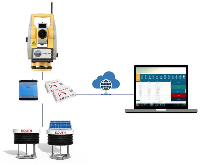 NT10(0.5″) /NTS-591R10(1″)國產高精度測量機器人搭載監(jiān)測之星軟件,可以實現(xiàn)半自動化監(jiān)測和全自動化監(jiān)測,不受條件制約,無人值守,節(jié)省人力、物力,全天候作業(yè)。自動化監(jiān)測方案除了全站儀本身以外,還包含了自動控制、現(xiàn)場防護、網絡傳輸、供電等,再依托南方SMOS自動化平臺,構成綜合的自動化監(jiān)測解決方案,實現(xiàn)遠程控制、周期性自動化數(shù)據(jù)采集,記錄監(jiān)測目標的位移變化量及變化趨勢,進行智能化數(shù)據(jù)分析,判斷目標物的位移變化趨勢,根據(jù)設定的預警值,提供多種預警方式,為技術人員提供實時的現(xiàn)場數(shù)據(jù)監(jiān)測,為施工現(xiàn)場的安全提供指導和決策的依據(jù)。