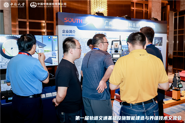 會場外,南方測繪展出了南方空天地水一體化鐵路解決方案,包括:南方“云眼”、南方無人機(jī)智控中臺、南方北斗地基增強(qiáng)系統(tǒng)、組合慣導(dǎo)動態(tài)檢測系統(tǒng)、南方軌道檢查儀、南方測量機(jī)器人GS05P、智慧測繪數(shù)字化管理系統(tǒng)、鐵路在線自動化監(jiān)測系統(tǒng)、南方數(shù)字孿生鐵路解決方案、SU20智能無人船、鐵路虛擬仿真教學(xué)培訓(xùn)系統(tǒng)。吸引了數(shù)位院士及眾多重量級參會嘉賓駐足,產(chǎn)品展位前人流不斷。其中,由南方測繪自主研發(fā)的南方測量機(jī)器人GS05P在展會中更是大放異彩,獲贊無數(shù)。它打破了進(jìn)口0.5秒高精度全站儀壟斷局面,引領(lǐng)了高端儀器國產(chǎn)化的市場。中國中鐵股份有限公司黨委書記、董事長陳云在聽完介紹后,給予了鼓勵及認(rèn)可。