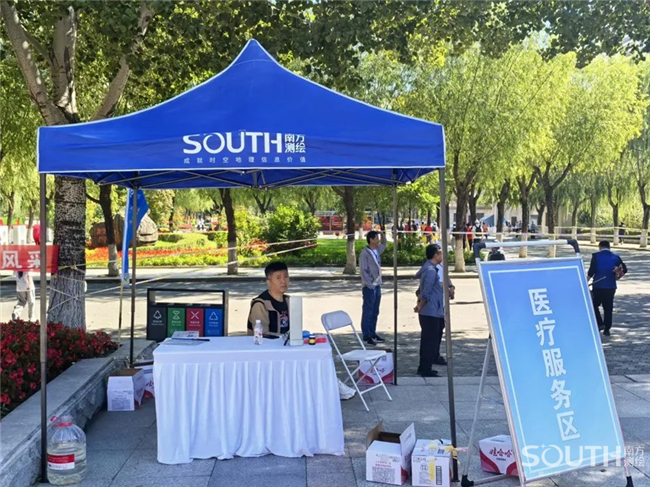 比賽現(xiàn)場(chǎng),南方測(cè)繪派出10余名技術(shù)骨干全程參與外業(yè)部分的技術(shù)支持工作,同時(shí)為參賽隊(duì)伍提供了設(shè)備調(diào)試等保障服務(wù),保障競(jìng)賽的順利進(jìn)行。
