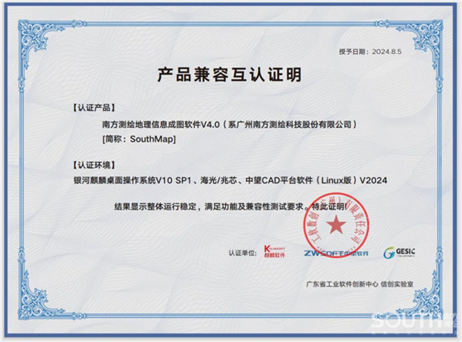 南方智能基礎(chǔ)地理信息數(shù)據(jù)生產(chǎn)軟件通過(guò)麒麟軟件NeoCertify認(rèn)證