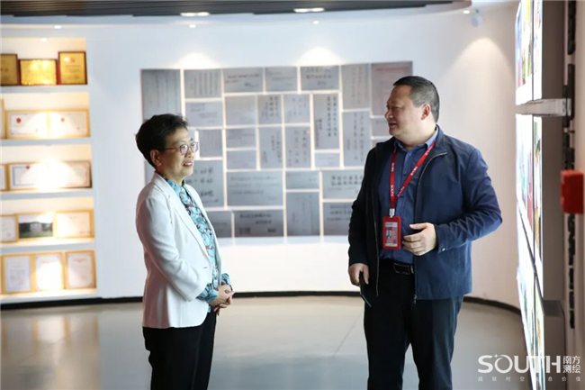 在繆小林等的陪同下,王永梅社長(zhǎng)一行參觀了南方測(cè)繪體驗(yàn)中心,從企業(yè)當(dāng)前發(fā)展情況、發(fā)展歷程、產(chǎn)品和業(yè)務(wù)方向、企業(yè)文化等多方面深入了解南方測(cè)繪。在這里,王永梅社長(zhǎng)重點(diǎn)了解了近年來(lái)南方測(cè)繪高端裝備國(guó)產(chǎn)化、智能化和產(chǎn)業(yè)化應(yīng)用的發(fā)展情況,并對(duì)南方測(cè)繪三十多年來(lái)取得的發(fā)展成果表示肯定。