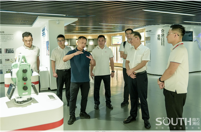 在楊藝等陪同下,朱小波一行參觀南方測繪體驗中心。朱小波表示,作為一家深耕測繪領域的民族企業(yè),南方測繪多年不忘初心,腳踏實地持續(xù)為社會輸送優(yōu)質的產(chǎn)品、技術及應用成果等,這讓人深感震撼。