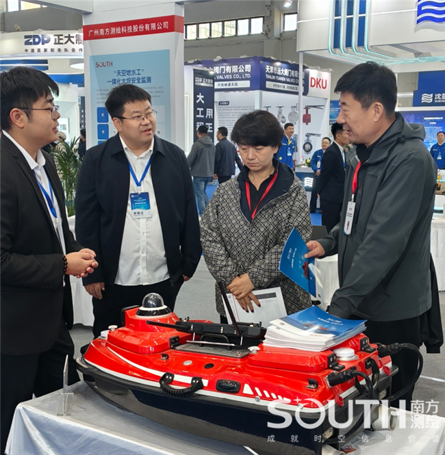 在裝備展示區(qū),南方測繪三維激光掃描儀、機器人全站儀等高端裝備同樣備受矚目,水利行業(yè)的參會嘉賓與技術(shù)團(tuán)隊在水庫大壩自動化監(jiān)測以及病害識別、水利數(shù)據(jù)底板建設(shè)、河道堤防巡檢等領(lǐng)域開展了深入交流。