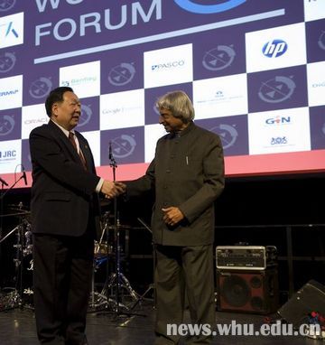 4月23日至4月25日,李德仁院士、朱宜萱教授赴荷蘭阿姆斯特丹參加地理空間信息世界論壇,代表武漢大學(xué)領(lǐng)取“地理空間信息科學(xué)全球領(lǐng)袖”獎(jiǎng),印度第11屆總統(tǒng)阿卜杜爾·卡拉姆博士為其頒獎(jiǎng)。李德仁于領(lǐng)獎(jiǎng)的翌日下午,在“培訓(xùn)與教育:行業(yè)和研究機(jī)構(gòu)的合作”專題中,作了題為《論地理空間信息的知識(shí)轉(zhuǎn)化》的報(bào)告。
