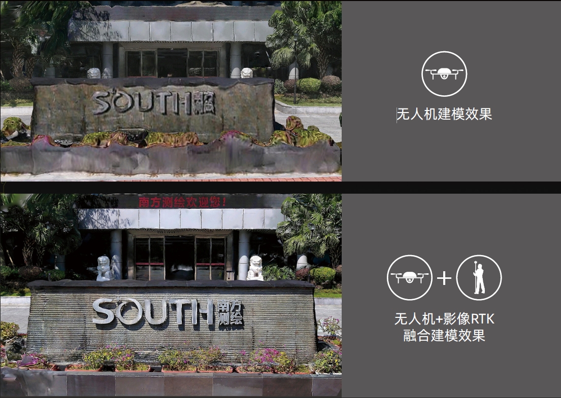 無人機航測時,對于屋檐、樹下等視覺盲區(qū),會出現(xiàn)拍攝不到或者影像拉花的問題,使得整個模型不完整??梢允褂糜跋馬TK沿著無人機視覺盲區(qū)進行動態(tài)拍攝,實現(xiàn)無人機數(shù)據(jù)與影像RTK數(shù)據(jù)聯(lián)合精細化建模。