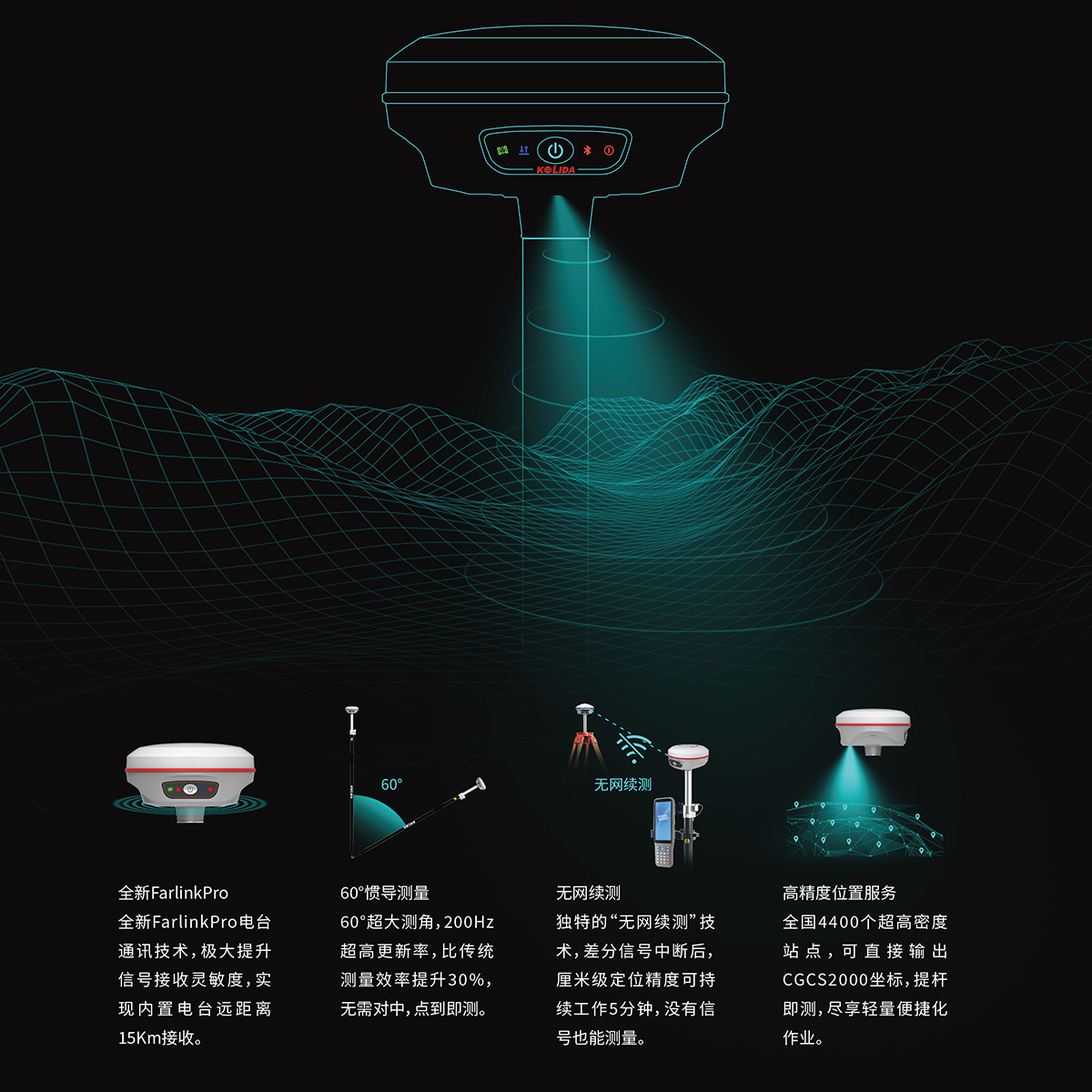慣導(dǎo)傾斜測(cè)量 | 內(nèi)置IMU慣性測(cè)量傳感器,支持慣導(dǎo)傾斜測(cè)量功能,根據(jù)對(duì)中桿傾斜方向和角度自動(dòng)校正坐標(biāo)。 |