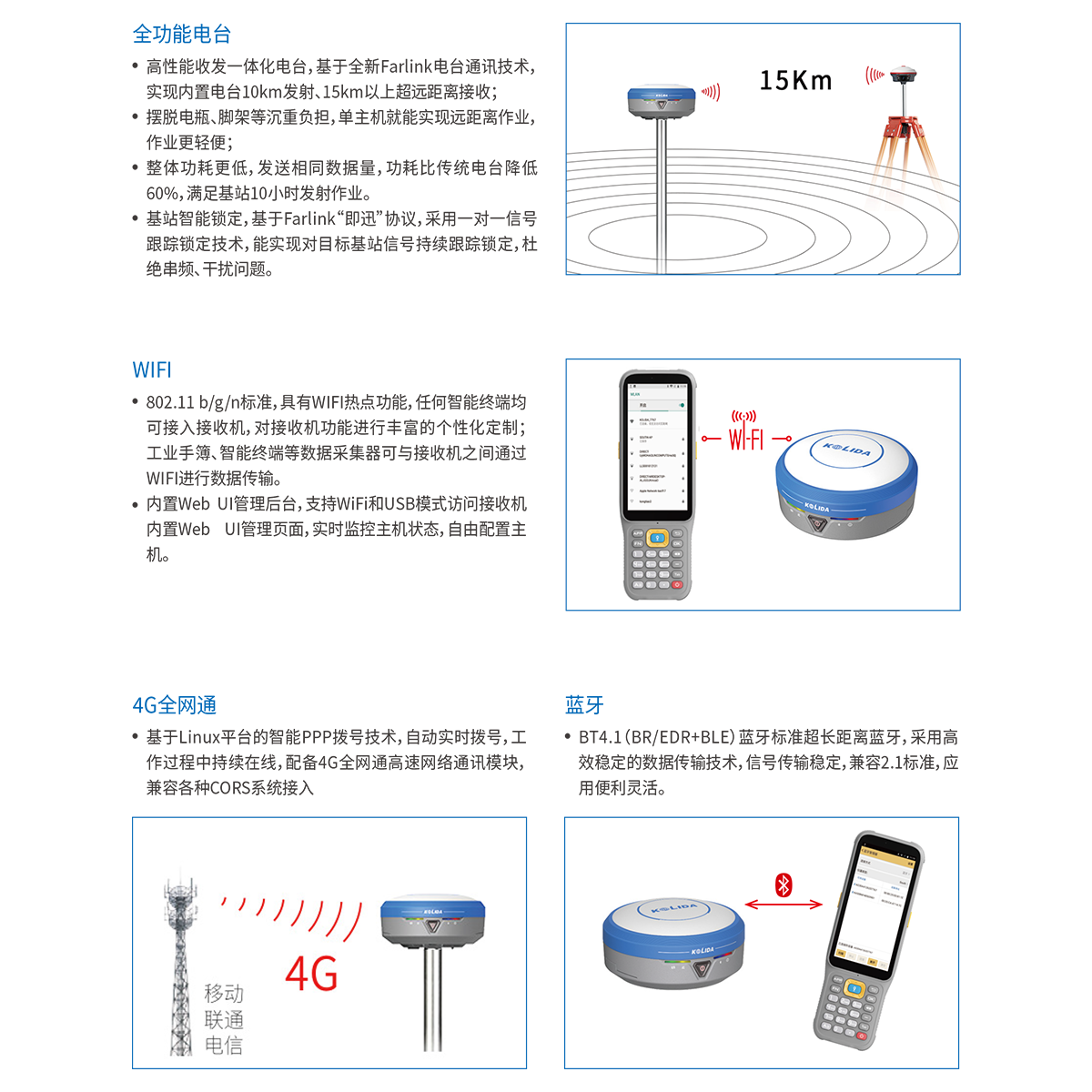 4G全網(wǎng)通 | 基于Linux平臺(tái)的智能PPP撥號(hào)技術(shù),自動(dòng)實(shí)時(shí)撥號(hào),工作過程中持續(xù)在線,配備4G全網(wǎng)通高速網(wǎng)絡(luò)通訊模塊,兼容各種CORS系統(tǒng)接入 |