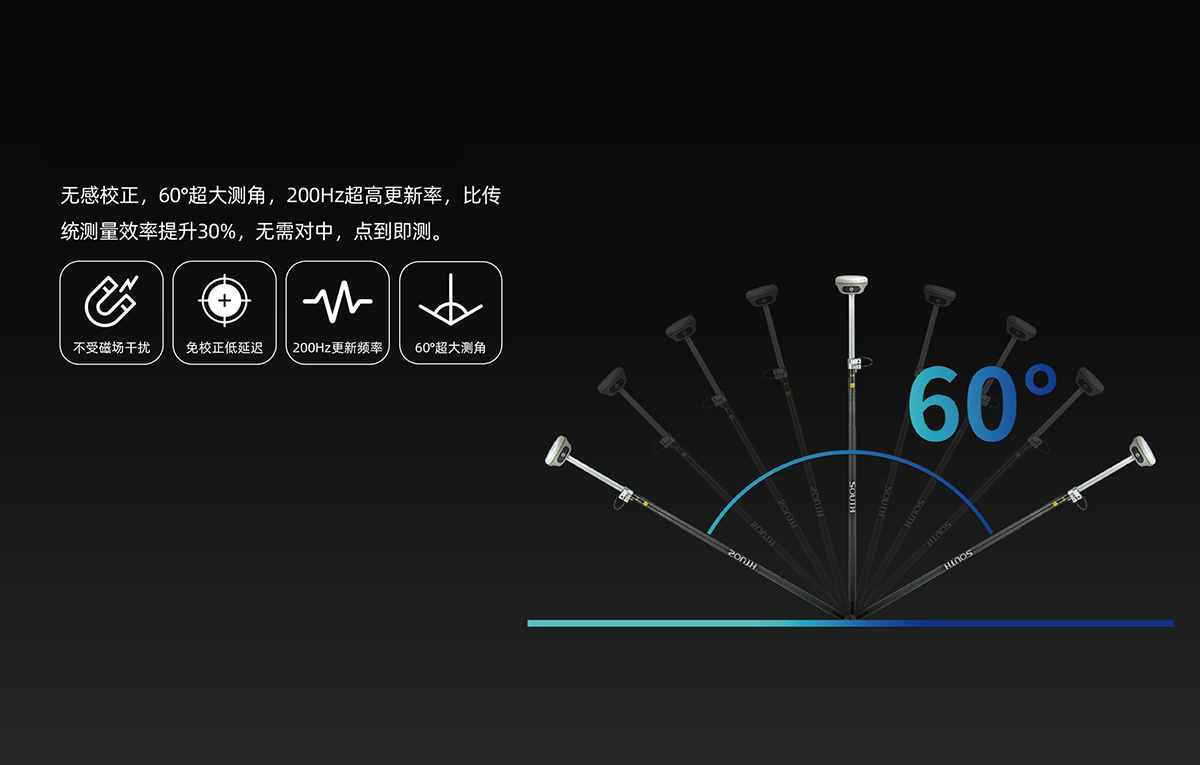 慣導(dǎo)傾斜測(cè)量 | 內(nèi)置IMU慣性測(cè)量傳感器,支持慣導(dǎo)傾斜測(cè)量功能,根據(jù)對(duì)中桿傾斜方向和角度自動(dòng)校正坐標(biāo)。 |