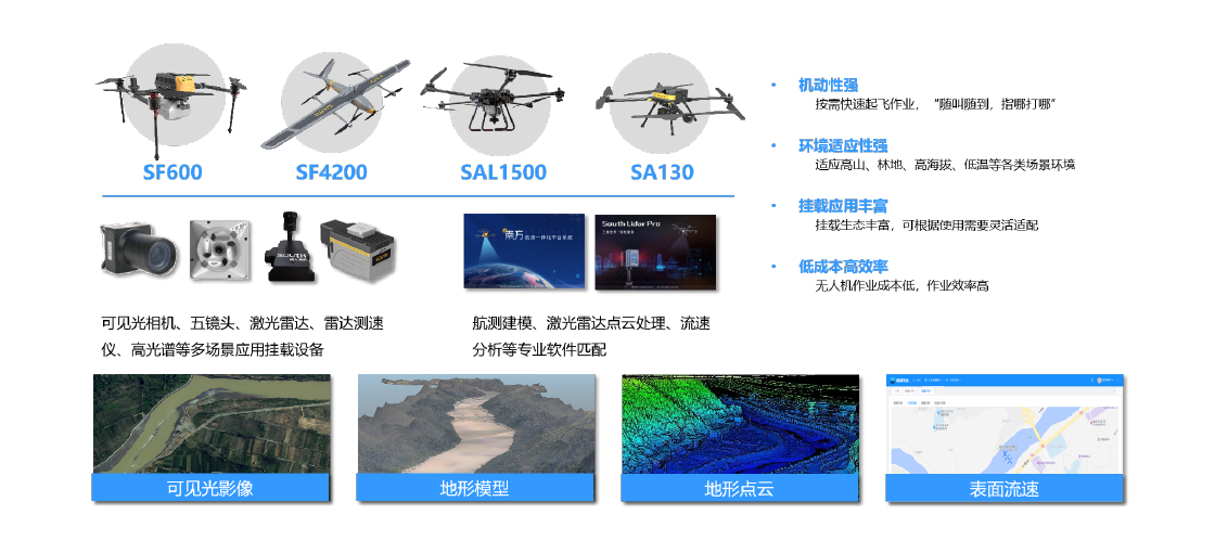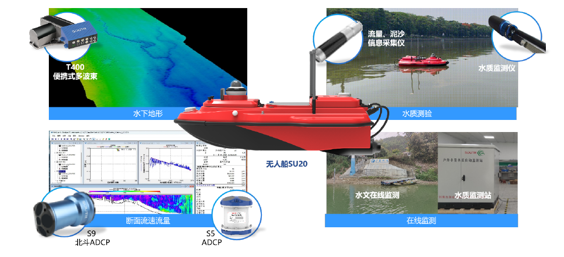 通過無人船靈活搭載多波束、水質(zhì)儀、流速流量儀等各類傳感設(shè)備,以及安裝固定式在線監(jiān)測站,感知河流水庫等場景的水位、流速、流量、水質(zhì)、地形等水下關(guān)鍵要素。