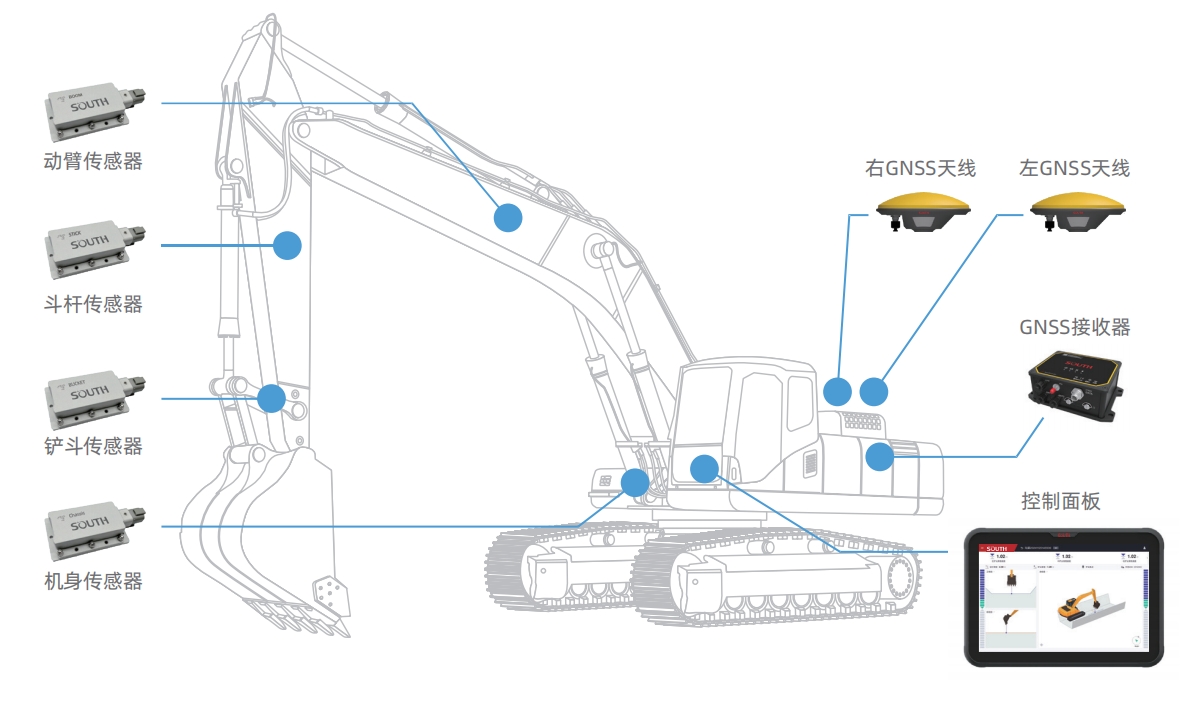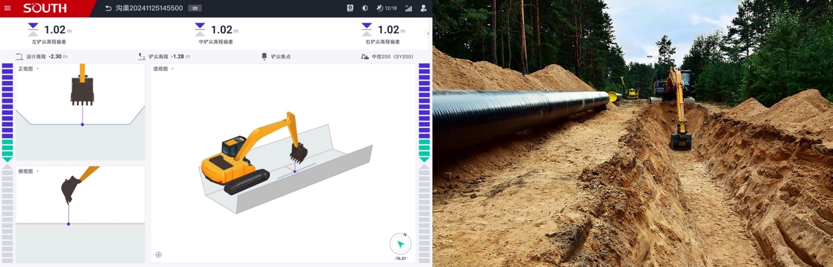 根據(jù)設(shè)定的參考點(diǎn)計算鏟斗與目標(biāo)作業(yè)面的相對高程,通過實時的可視化引導(dǎo)避免超挖或欠挖,確保挖掘作業(yè)符合工程精度規(guī)格。