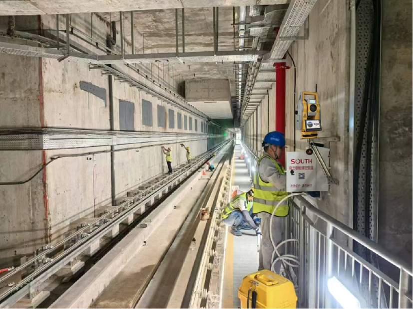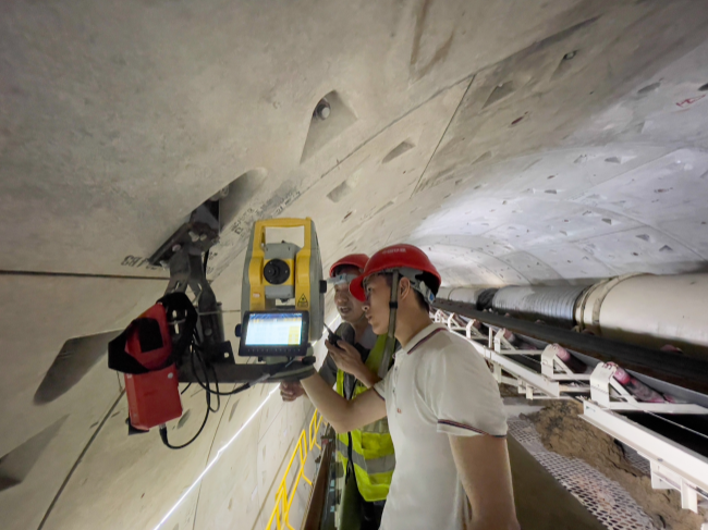在隧道開挖導(dǎo)向整個(gè)方面我們也推出了國產(chǎn)化解決方案,通過測量機(jī)器人輔助,在盾構(gòu)機(jī)掘進(jìn)的時(shí)候,不間斷地進(jìn)行方向校驗(yàn),保障整體工程的精準(zhǔn)性。